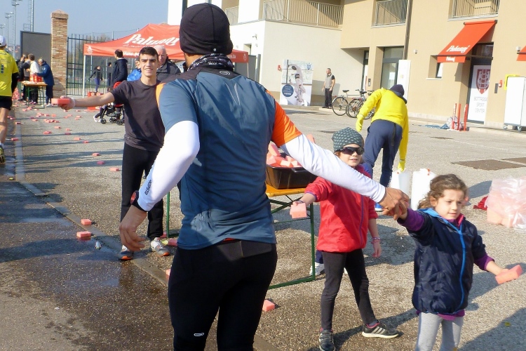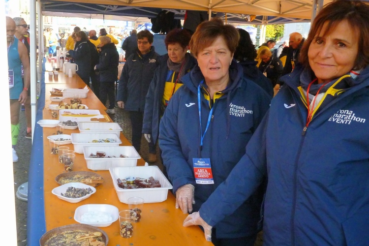Im Zielbereich kann man bei warmen Temperaturen noch die Köstlichkeiten des Buffets genießen, unter anderem Rosinen und Nüsse, Brötchen mit italienischer Salami und weihnachtlicher Panettone.