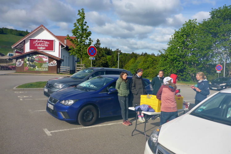 Die einfache Erreichbarkeit der Versorgungsorte und die gute Infrastruktur machen die Planung diesmal einfach. Fünf Frühstarter, fünf Spätstarter und zwei Quereinsteigerinnen bei der Hälfte der Strecke, bilden das Starterfeld. Die Startzeiten sind so geplant, dass wir alle etwa zur gleichen Zeit am Nachmittag des Folgetages am Gipfel des Grand Ballon ankommen.