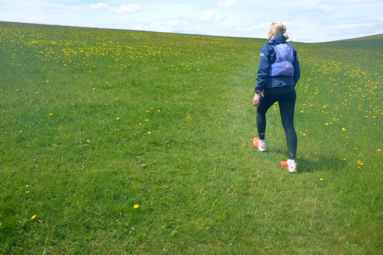 Wir lassen uns Zeit. Gekochte Kartoffeln, Käse und als Abschluss noch ein paar Happen Melone dienen als Grundlage für den kommenden Anstieg. Aber alles halb so wild. Die nächsten 750 Höhenmeter legen wir auf einer breiten Fahrstraße mit angenehmer Steigung zurück. Ein Gel mit Koffein vertreibt die Müdigkeit auf der einfachen Strecke. Dann folgen in stetigem Auf und Ab wieder blühende Kuhweiden. Kurz vor dem Skigebiet Le Markstein bereiten sich Gleitschirmflieger auf den Start vor. Hier wartet auch die letzte Verpflegung auf uns.