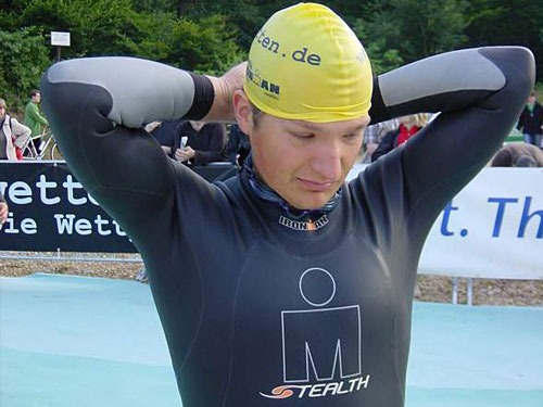 Am 10.07.2005 – 3.45 Uhr, der Wecker klingelt - „Nein, hoffentlich nur ein Traum“ - aber keine Chance DER LÄNGSTE TAG DES JAHRES hatte begonnen!!! Ich packte mein Schwimmequipment und begab mich zum Bus-Shuttle. Als wir um 5.00 Uhr am Langener Waldsee ankamen, herrschte dort bereits reges Treiben von Seiten der Offiziellen und der Athleten. Nach dem Rad-Check und dem Hineinquetschen in den Neoprenanzug ging es Richtung See. Dort tummelten sich zwar schon einige Athleten im Wasser, aber die meisten scheuten noch das pudelwarme Wasser und warteten auf der Rampe.