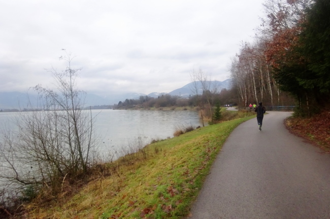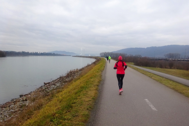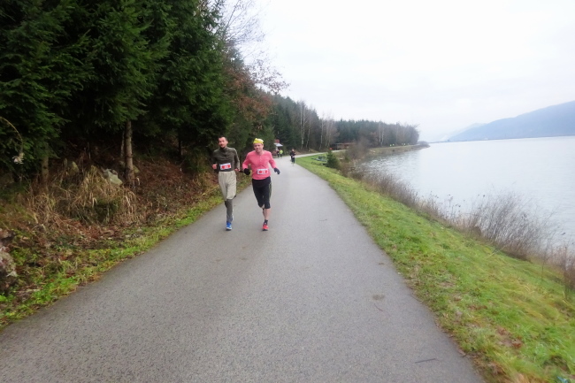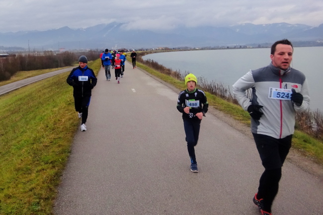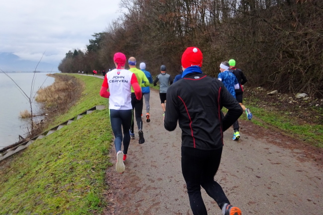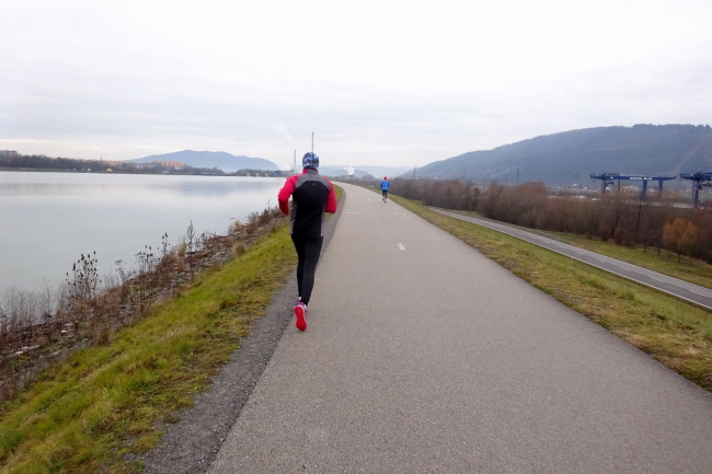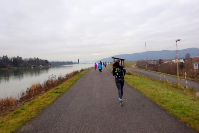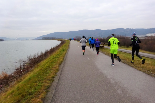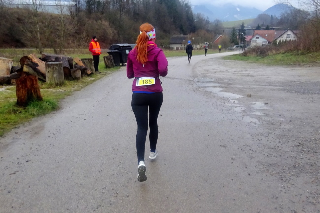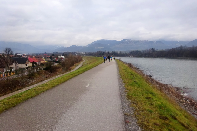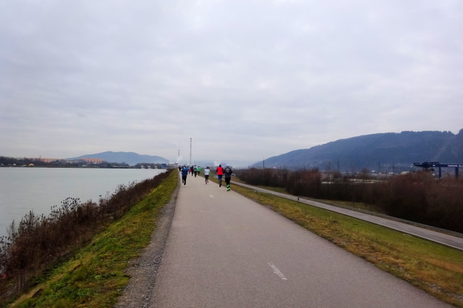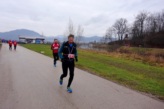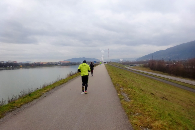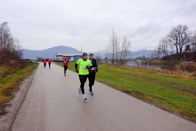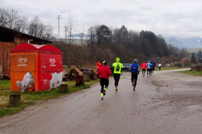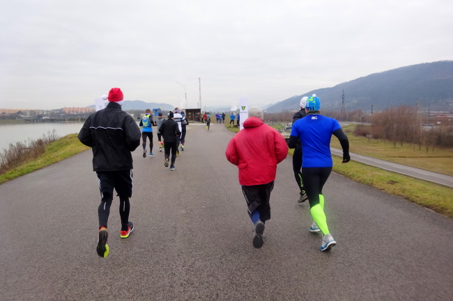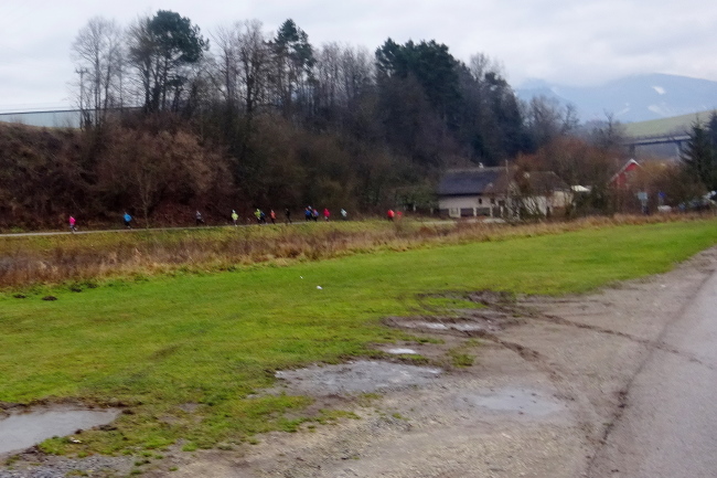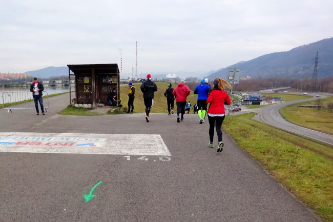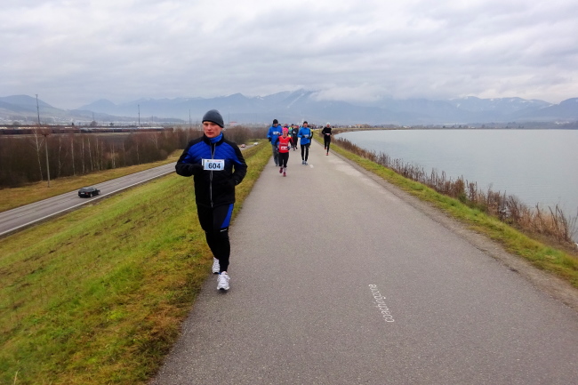 Bei der Labe gibt es warmen Tee – das ist ein Plus, aber so ein Service wie letzte Woche in Reggio Emilia wird es hier nicht geben, das wäre auch zu viel verlangt. Der Žilina-Stausee wirkt auf mich eigentlich wenig einladend. Mit seinen 2,55 km² dient er der Stromerzeugung, dem Hochwasserschutz und hat auch für Tourismus und Erholung Bedeutung. Dringend sollte sich die Stadtgemeinde dazu aufraffen, den See in den Wintermonaten von allerlei angeschwemmten Abfällen zu reinigen.