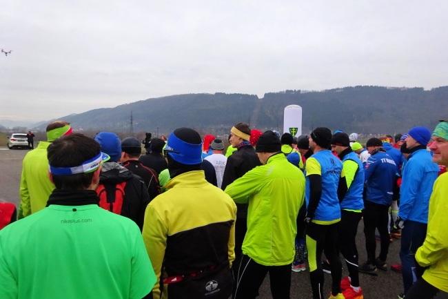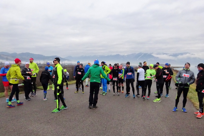 Bis zum Start sind noch 1 ½ Stunden Zeit, langsam fühlt sich der Parkplatz, es gibt Ausweichplätze im Nahbereich. Drei Laufbewerbe stehen heute am Programm: der für 8 Uhr 30 angesetzte Marathon, zwei Stunden später dann der Halbmarathon und der 8,3 km-Lauf. Zudem als besonderes Spektakel und nur für harte Männer ein Schwimmbewerb im kaum 4 Grad kalten Žilina-Stausee.