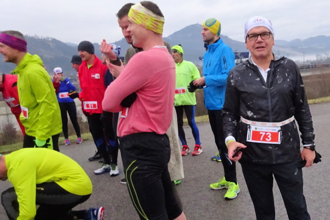 Ein nagelneuer Mercedes der C-Klasse fährt an mir vorbei, als ich mich mit eingeschalteter Heizung im Auto aufwärme. Fast hätte ich den Josef Stöger schon vermisst, aber jetzt ist er doch auch wieder gekommen. Wir beide werden heute die einzigen Österreicher sein, einige andere haben sich offenbar kurzfristig entschlossen, doch nicht nach Žilina zu fahren. Josef, Jahrgang 1950, ist ein Spätstarter, hat aber in wenigen Jahren mit 59 Marathons und 45 tlw. überlangen Ultraläufen den Hunderter erreicht und ist mit seinen 67 Jahren in einer spitzen Form. Erst vor kurzem finishte er den Florenz-Marathon in 04:27.