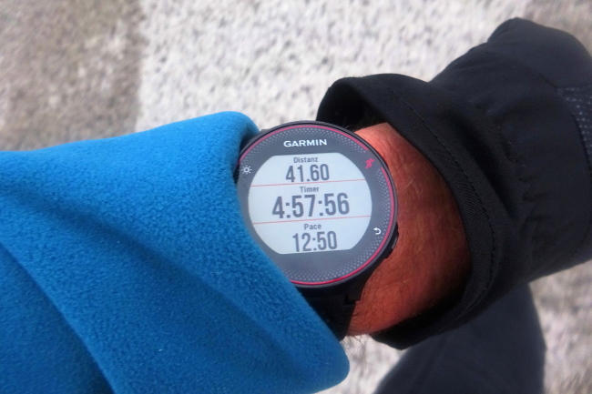 Die letzten 8 km liegen vor mir, mit einer 7er-Zeit würde ich knapp unter die geforderten 5 h kommen. Beim Durchlauf bei der Zeitnehmung habe ich zum Techniker im Bus noch eine Runde gedeutet – er hat genickt und verstanden, dass ich vielleicht etwas darüber liegen könnte. Nicht allzu weit weg in Laufrichtung erblicke ich einen Mann, der sich noch langsamer wie ich bewegt – ich komme ihm immer näher und hole ihn schließlich ein. Ich deute auf meine Uhr und sage „5 hours“. Er reagiert nicht, ist wohl am Ende seiner Kräfte. Ich muss nun zulegen. Es wird schwer, ich probiere auf den letzten vier Kilometern wieder die Galloway-Methode, 20 Schritte schnelles Gehen und 50-100m eine Fünferzeit und darunter. Aber am Ende fehlen mit 44 Sekunden – Hauptsache ich bin mit 5:00:43 als Vorletzter im Klassement und mein 49. Marathon wird in der österreichischen Jahressammlerwertung bei marathonaustria.com aufgenommen.