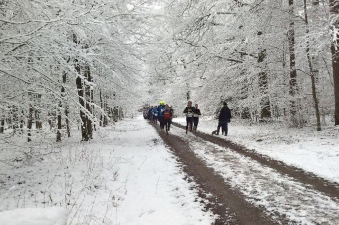 Immerhin 20 Teilnehmer wagten sich an die 15 340 Meter lang messenden drei Runden durch die Krähe. Das ging, wenn man es möglichst schnell anging, dann schon ordentlich in die Beine. Das erste Drittel der Runde ist noch relativ harmlos, aber bei Kilometer zwei fängt der Trail an. Neben einigen Richtungswechseln wechseln sich auch beständiges Rauf und Runter ab. Und das teils über von Schlamm, Schnee und Wurzeln gesäumte Pfade ab. Gefährliche Wurzeln wurden rot gekennzeichnet, die Richtungswechsel per Posten und Schilder angezeigt. Irrläufer und Verletze gab es keine. Das schönste Naturerlebnis aber war der verschneite Wald mit seinen weißbauschigen Ästen und Zweigen.