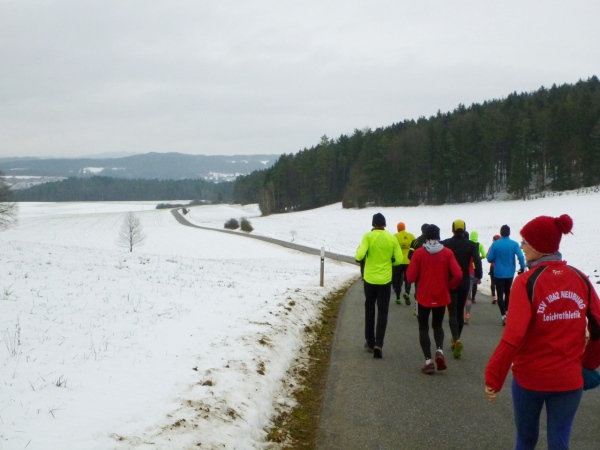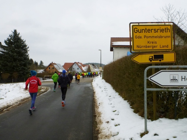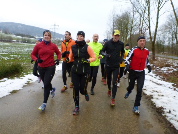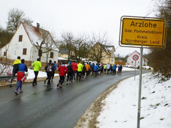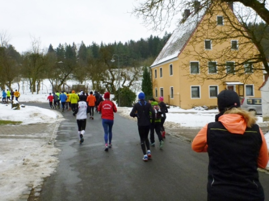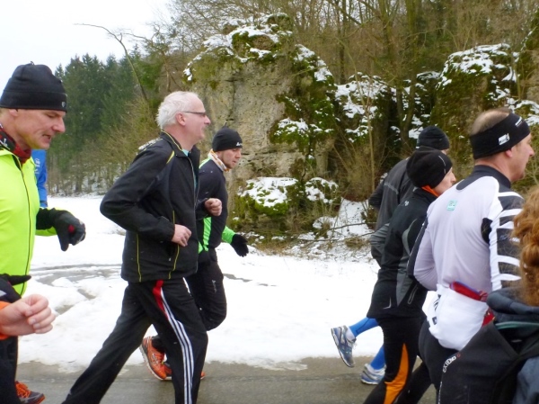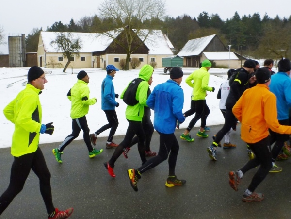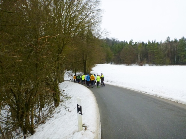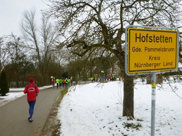 Ein gutes Training für die Marathonspezies. Für Verpflegung ist gesorgt und ganz nebenbei kommt man noch unbekanntes Geläuf zu Gesicht. Und für die Bildung ist auch noch was übrig. Zuschauer sind keine vorhanden, nur wenige Spaziergänger in den Ortschaften und am Happurger See. So ungezwungen fängt das Jahr gut an.
