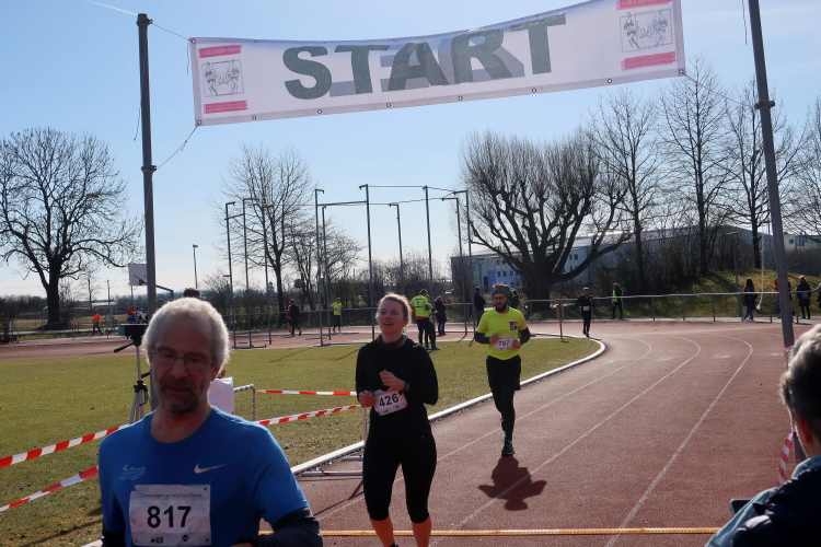 Ein paar Meter geht es, per Lautsprecher schon vom Zielmoderator angekündigt, über die Tartanbahn, dann ist das Zielbanner durchschritten, fixiert die Zeiterfassungsmatte die erbrachte Leistung. 1:11:50 sind das für Seriensieger Johannes Hillebrand, der selbst als über 40-jähriger noch die Jungdynamiker im Feld deklassiert. Bei mir sind es dann doch ein paar Minuten mehr.