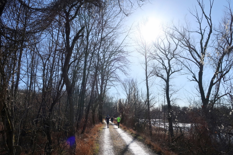 Zugegeben: Die ersten beiden Läufe über 13 und 17 km Mitte Dezember und Januar habe ich geschwänzt. Meine Ausrede: Im Dezember war es mir einfach nicht winterlich genug, im Januar der innere "Sonntag-Morgen-Schweinehund" zu übermächtig. Die Königsdistanz, den Halbmarathon "plus" über 21,4 km am 9. Februar lasse ich mir aber nicht entgehen, auch wenn von Schnee und Eis und damit einem gewissen Winterfeeling weit und breit keine Spur ist.