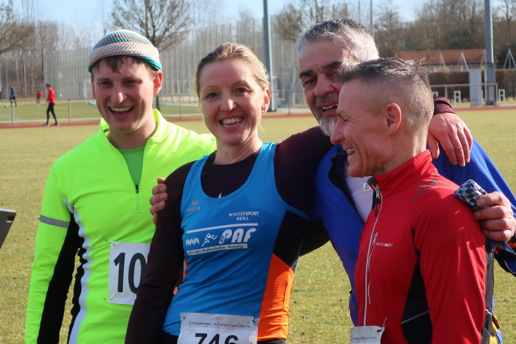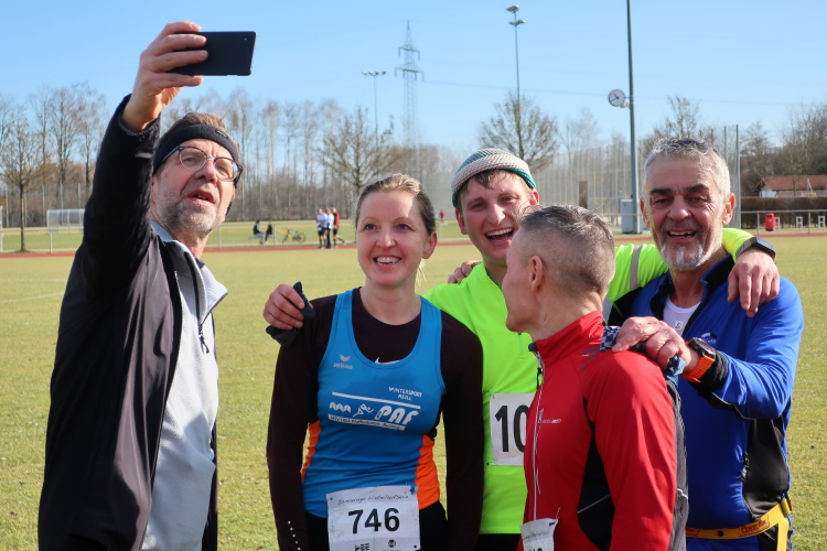 Nach den etwa 1.050 bzw. 950 Finishern bei den beiden ersten Läufen sind es zum Finale nochmals an die 900 Winterresistente, die im Sportpark des TSV Ismaning, gleichermaßen Start- und Zielpunkt der Veranstaltung, für einen respektablen Auflauf sorgen. Um dem Verkehrsinfarkt vorzubeugen, ist ein Busshuttle zur S-Bahn-Station eingerichtet. Wer auf sein Auto nicht verzichten will, sollte zumindest frühzeitig anreisen. Der große Parkplatz füllt sich schnell.
