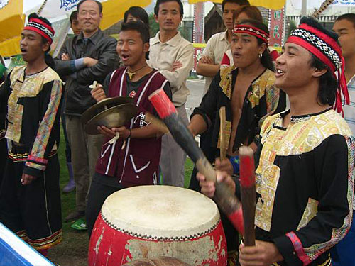 Der Sprecher meldet sich abwechselnd in Chinesisch und Englisch zu Wort und begrüßt die Teilnehmer. Nun fängt es zu Regnen an. Erfrischendes kühles Nass rieselt auf uns herunter.