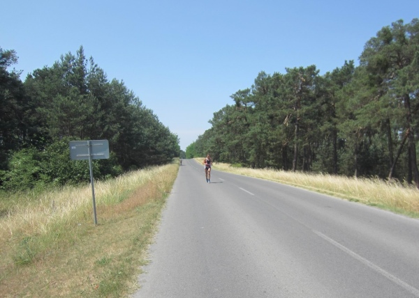 Knapp bevor die Waldstrecke endet und in das Ortsgebiet von Borsky Mikulas einmündet, hole ich den Mann mit der Nummer 232 wieder ein –sein Tempo war doch etwas zu hoch, auch ist jetzt die Hitze deutlich mehr zu spüren. Er wird die folgenden 6 km bis nach Šaštín Stráže durchhalten.