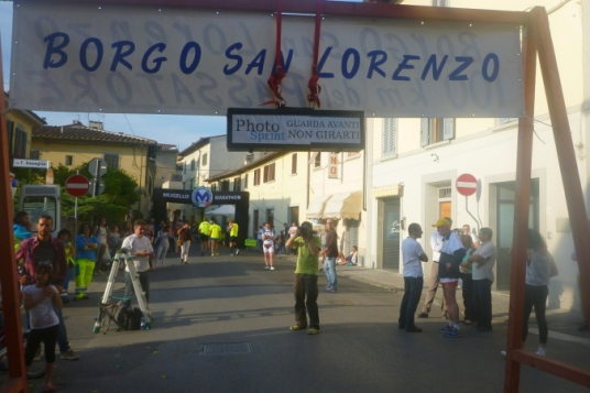 In Borgo San Lorenzo ist wieder richtig Stimmung. Eine Zeitmessmatte ist zu überlaufen. In den Startunterlagen gibt es übrigens auch einen Leihchip. Und der muss an diesen Matten piepsen, sonst wird man disqualifiziert.