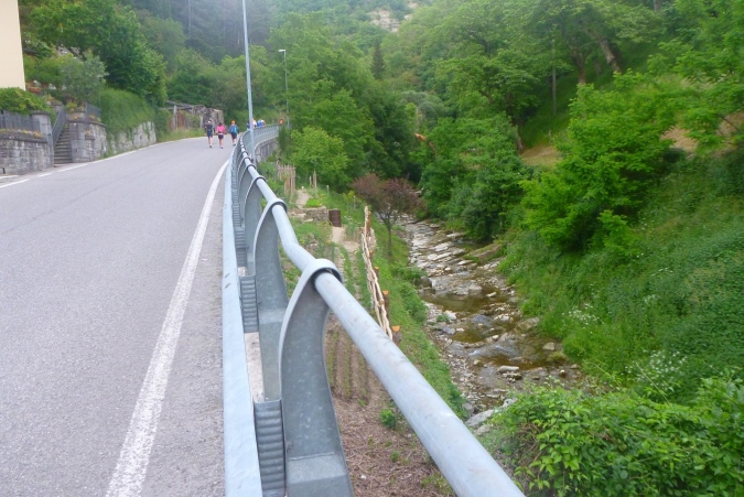 Die Straße ist ab jetzt nicht mehr für den Verkehr gesperrt. Andauernd kommen Autos, Busse, LKWs, Motorräder und Vespas von vorne und hinten an uns vorbei und machen Lärm und verbreiten Gestank. Entspanntes Laufen auf der Straße stelle ich mir anders vor. Es kommt zwar zu keinen für mich erkennbaren gefährlichen Situationen, aber mehrmals zu Beeinträchtigungen beim Laufen. Echt unangenehm.