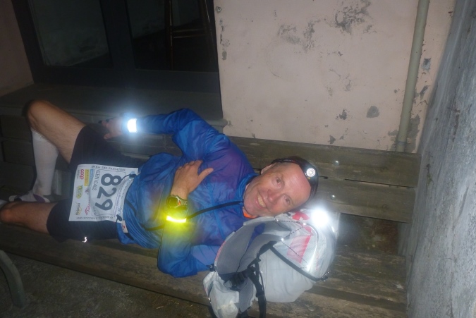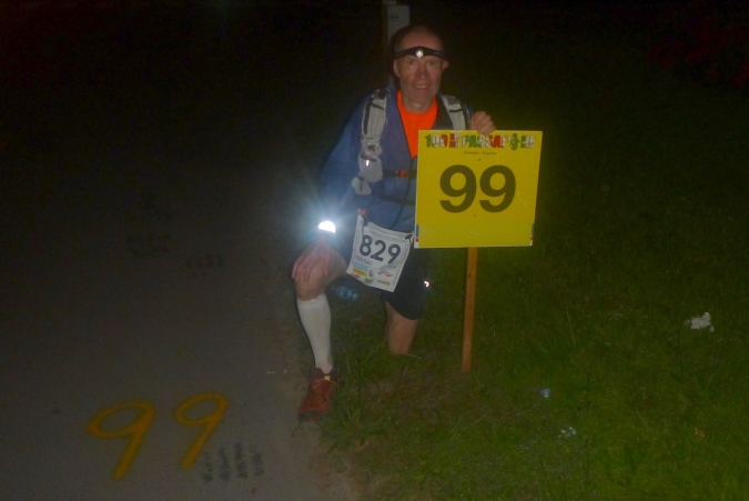 Was ich hier will? Ein Foto ähnlich dem meines großen 100 Km-Läufer Vorbildes Wolfgang aus Waldbreitbach bei Km 99 in Biel. Nur, ich will mein Foto bei Km 98. Da will mich aber keiner fotografieren. Gottlob erbarmt sich bei Km 99 ein Mitläufer und lichtet mich ab.