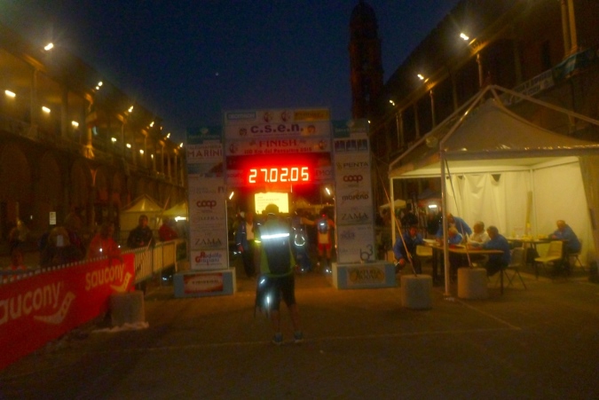 Der letzte Km ist ein einziger Genuss. Hinein ins Zentrum von Faenza und auf der Piazza del Popolo geht es beim Morgengrauen durch den Zielbogen. Nach fast 14 Stunden ist der Passatore für mich gelaufen.