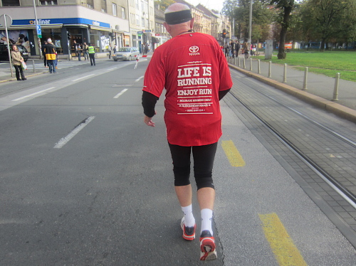 Ich komme nun in die Nähe des Start- und Zielpunktes am Jelačić-Platz, es geht jetzt auch für mich in die zweite Runde. Für den Halbmarathon habe ich knapp unter 2:15 Stunden benötigt. Komisch ist der Umstand, dass nur bei den beiden Wenden eine Zeitnahme erfolgt, man also keine offiziellen Zwischenzeiten wie oft bei 5 km-Abschnitten bekommt.