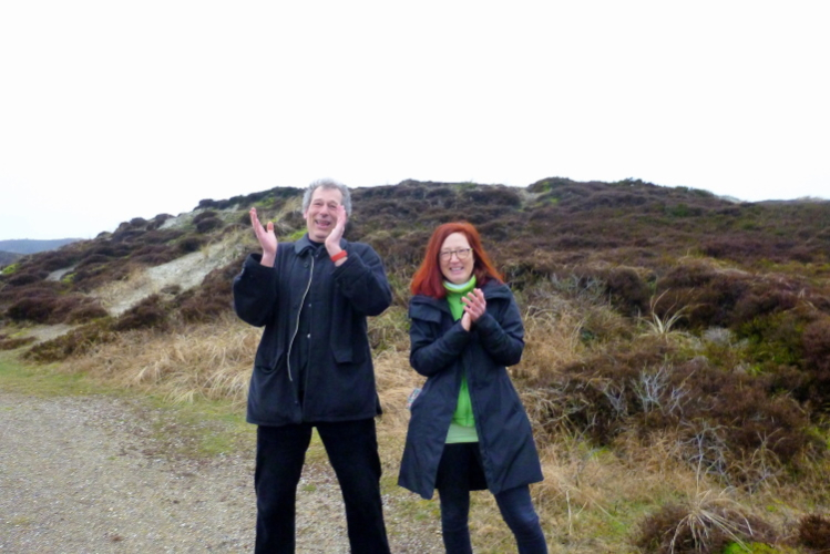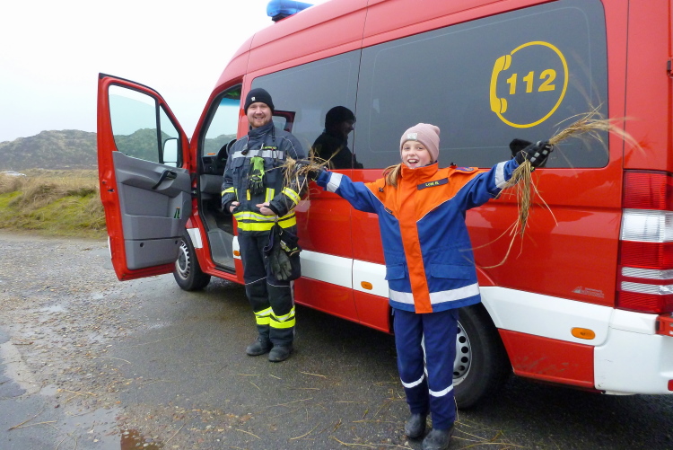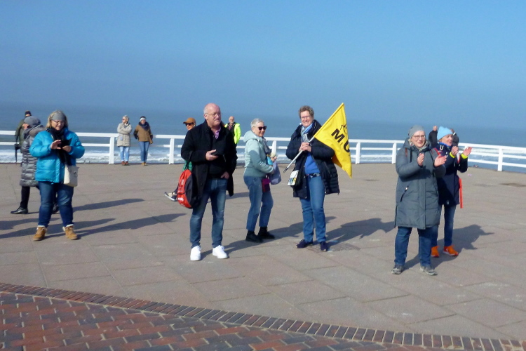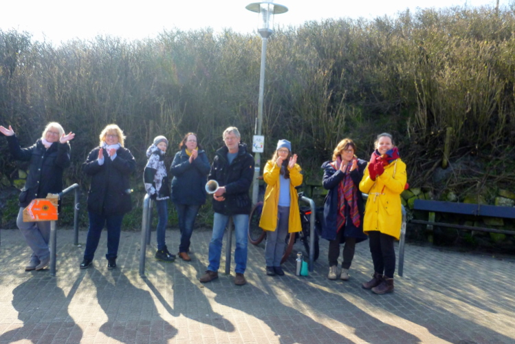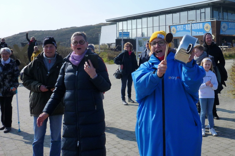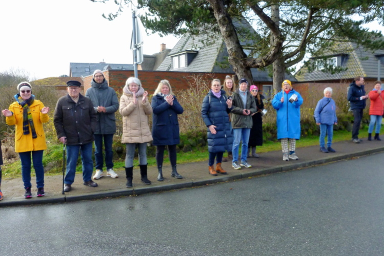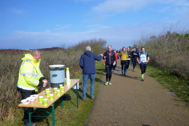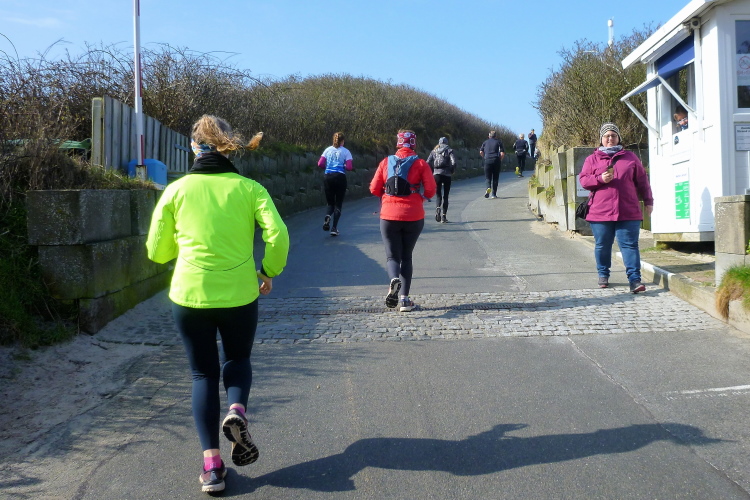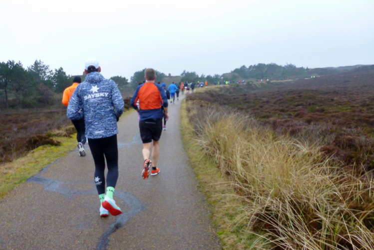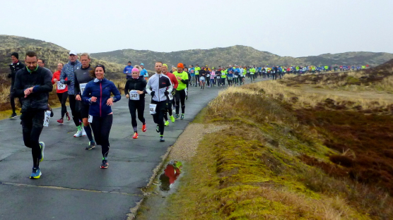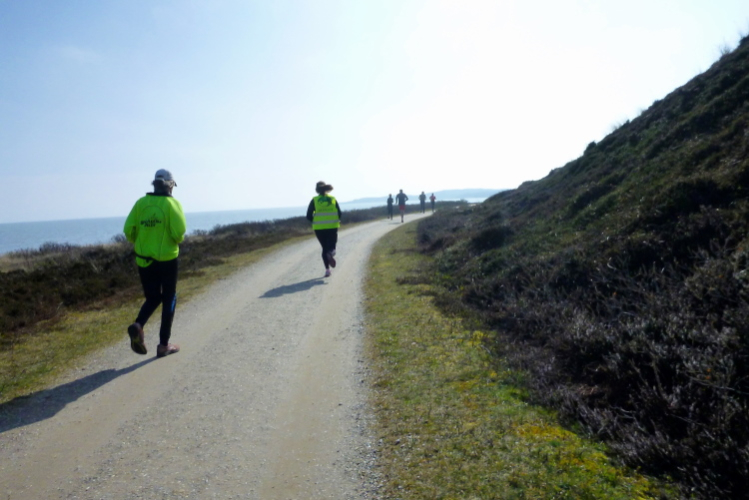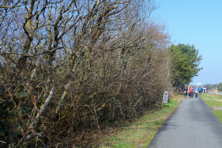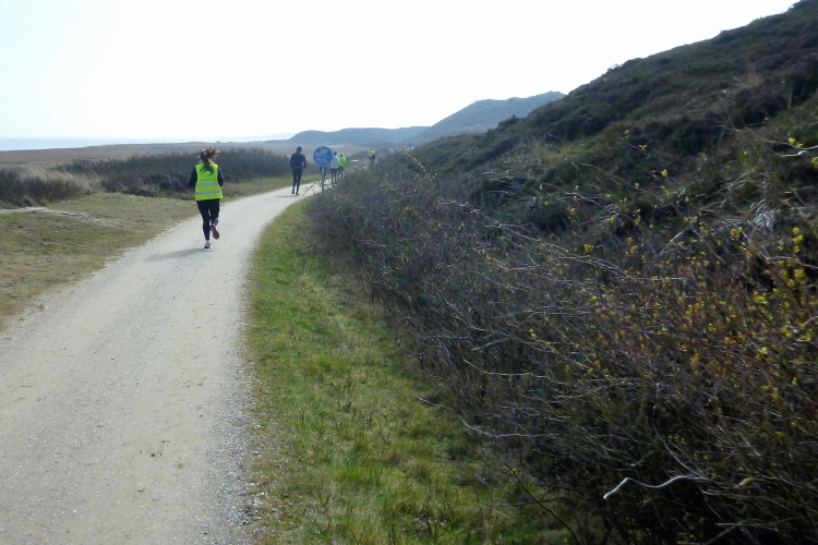 Was hat es hier nicht schon alles an Wetter gegeben! Selten mild, häufig stürmisch und nass bis hin zu richtigem Schietwetter. Eine Inselbesichtigung der ganz besonderen Art ist dies also in aller Regel, nur etwas für Hartgesottene, nicht für Weicheier. Heute ist uns Trockenheit bei etwa acht Grad versprochen, weshalb ich mich als alter Hase mit je einem Langarmshirt und Windbreaker begnüge. Unter den Startern sind auch Iris und Jürgen aus meinem Laufumfeld, die mit einer Gruppe angereist sind, und über deren Anwesenheit ich mich sehr freue. Um zehn Uhr hat es sich dann ausgefreut, denn et jäht loss, die Schnellsten im Achselshirt, uaaaah...