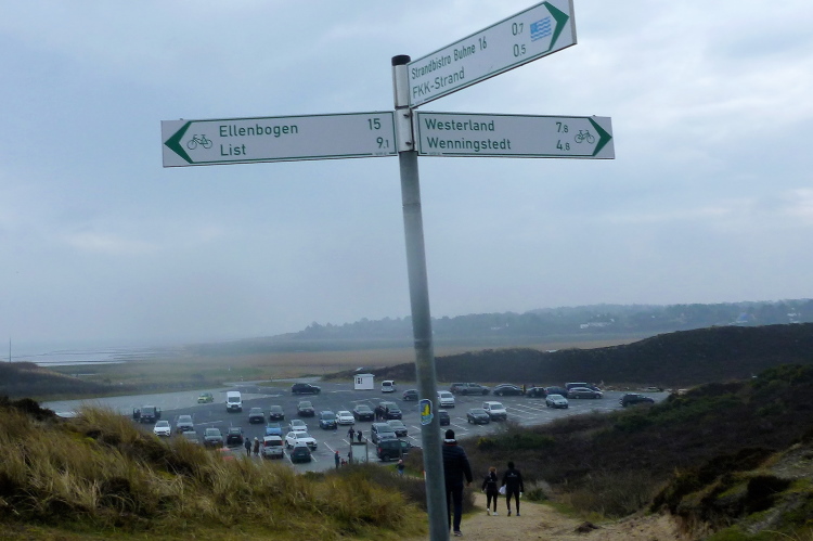 Dann haben wir wohl so etwa 25 km hinter uns gebracht, als es heimatlich zu werden beginnt, also zumindest naht unser temporäres Zuhause. Rantum liegt etwa neun km oberhalb von Hörnum. An der Einfahrt zum Hafen kommen wir vorbei, wo das Rantumer Becken den Schauplatz eines eigenen Volkslaufs bildet. Es versteht sich von selber, dass wir den in unserer Urlaubswoche einmal abzulaufen gedenken.