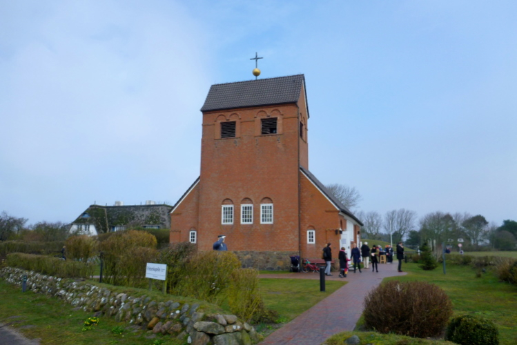 Schon seit einigen km straft die Wirklichkeit alle Wetterapps Lügen, die einen kompletten Tag in Grau angekündigt hatten. Welch ein Glück für uns, bei fast Windstille und eitel Sonnenschein genießen wir einen begnadeten Tag. Nach 12,7 km erscheint der erste VP mit Wasser (warm!), Iso, Bananen, Nüssen, Haribo und Mohrenköpfen (Schaumküsse für die politisch Korrekten). Vorbei am Leuchtturm erkenne ich, nun schon in Wenningstedt, die Friesenkapelle. Auch diese werden wir am Folgetag besuchen und über die hübsche Ausstattung, vor allem die Deckenbemalung, staunen. An tollen Friesenhäusern geht es vorbei, an denen auf der Insel der Schönen, Reichen und ganz schön Reichen wahrlich kein Mangel herrscht. Willst Du etwas halbwegs Vernünftiges haben, brauchst Du Dir unter einer Million Euro nicht die Spur eines Gedankens machen.