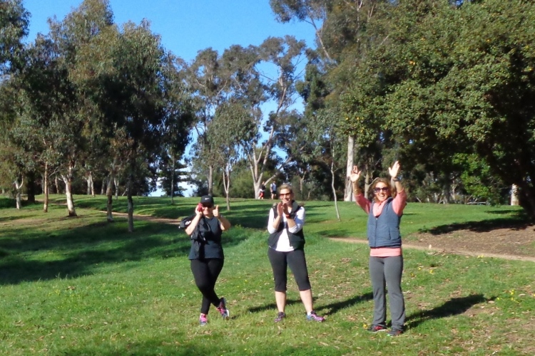 Was ich nicht weiß: wie komme ich mit so wenig Treibstoff aus? Ab km4 geht es in den Bonython Park, prächtige Platanen stehen da. Ein paar 100m geht es rein, dann U-turn. So kann man gut seine Mitläufer begutachten. Dieser Stich in den Park wird bei der zweiten Runde deutlich kürzer sein. Dann geht es über ein Bächlein, das Streckenprofil wird wellig. Schön zum Radeln und Spazieren, eher anstrengend zu laufen. Bei km6 ist mein Tank leer, ich spüre richtig, wie die Kraft weg ist, ab nun wird es beschaulicher. Ein Tunnel unterquert die Eisenbahn, ein leichter Anstieg, die tief stehende Sonne blendet und es geht links über die Wehr die dafür verantwortlich ist, dass der River Torrens ein Stück flussaufwärts so eine spiegelglatte Oberfläche hat.