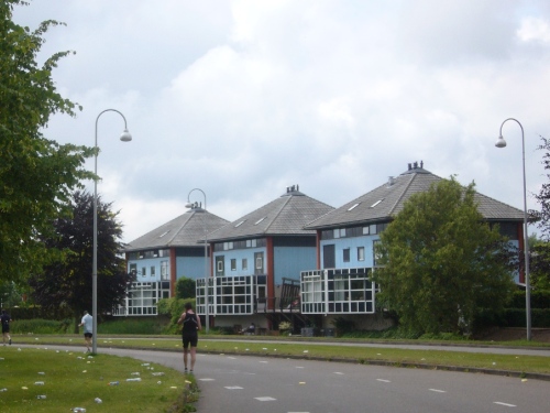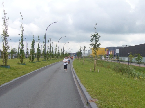 Die nächsten 2km ging es durch Wald und kleine Siedlungen. Dann führte uns der Weg über die Autobahn und es ging neben der lauten und stark befahrenen Straße bis km 25. Ein kleines Wäldchen verschaffte uns kurzzeitig etwas Ruhe, ehe es entlang lauter Verkehrsstraßen weiter ging bis zum nördlichsten Punkt bei km 35. Hier umliefen wir das große Schwedische Möbelhaus (mein Auto stand noch da) und überquerten die Autobahn in ein weiteres Wohngebiet. Jetzt hörte es endlich auf zu regnen und die Sonne kam durch. Die nächsten 5 Kilometer ging es durch Wohngebiete und Wiesengürtel. Es wurde richtig schwül-