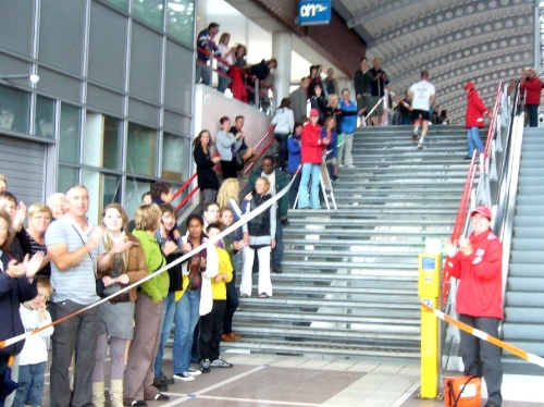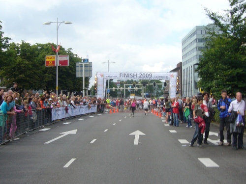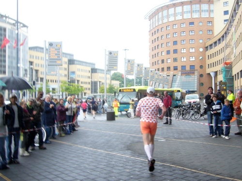 Kurz vor km 40 ging es noch mal durch die Feuerwache und am Kanal entlang Richtung Altstadt. Wieder erreichten wir das Koppeltor und den Langen Jan, wo sich jetzt eine Gruppe von ca. 50 Trommlern entlang der Straße aufgereiht hatte und die Läufer rhythmisch antrieben. Jetzt ging es nur noch durch die belebte Fußgängerzone und dann direkt ins Ziel.