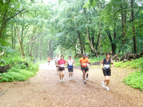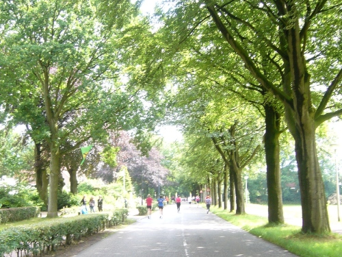 Es folgte ein großes Waldgebiet mit vielen schönen Häusern. Kurz vor km 21 bogen wir ab in einen großen Park, der zum Klinikum für Psychiatrie und Somatiek gehört. Hier hatten sich viele Bewohner versammelt und ließen uns durch ein langes Spalier laufen. Das sorgte für Gänsehaut pur.