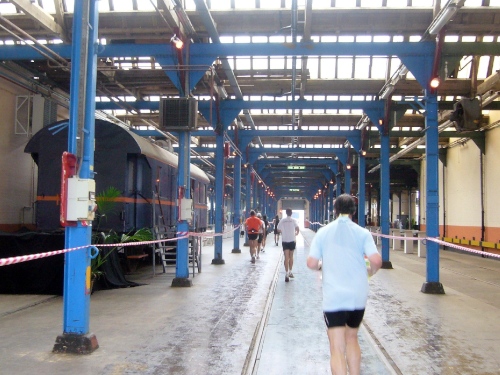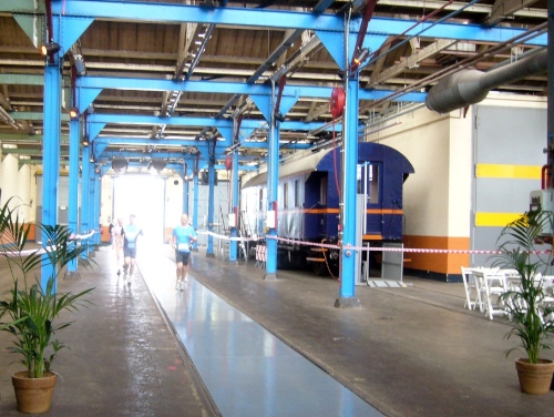 Über eine fast 1km lange Allee erreichten wir die alten Gebäude des Eisenbahnausbesserungswerkes. Auch hier ging es durch die alte Halle, in der sich historische Eisenbahnwagen und Loks befanden.