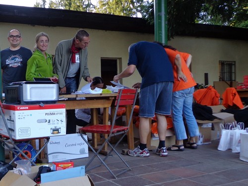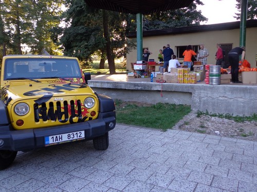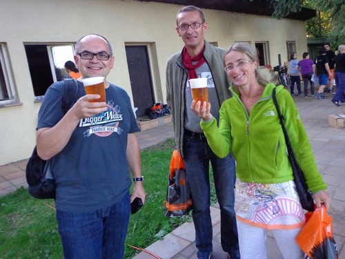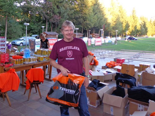 Am Freitag kommen wir mit den letzten Sonnenstrahlen nach Plasy, um unsere Startnummern in Empfang zu nehmen. Es wird gerade aufgebaut und gute Musik gespielt. Start und Ziel werden auf der Velká Louka (große Wiese) am Samstag um 10h sein. Zum Startgeld von € 20,- bekommen wir ein schwarzes Baumwoll-T-shirt mit dem Logo der Veranstaltung. Die Größe dürfen wir uns aussuchen. Als wir nach einem Schluck Bier fragen, bekommen alle die wollen einen Becher Bier, kostenlos, frisch gezapft und mit einem Lächeln.