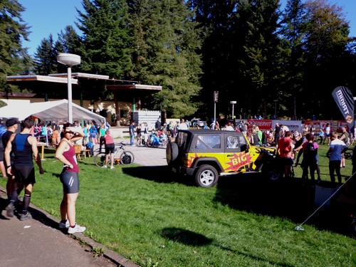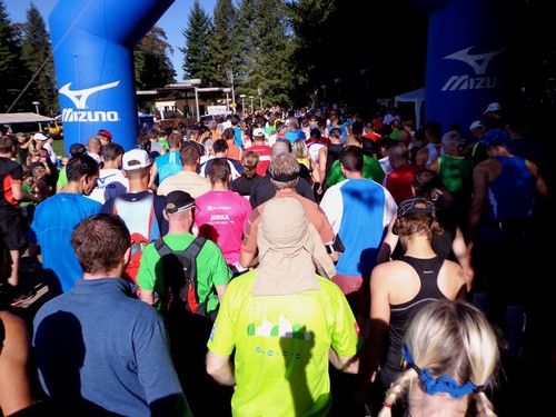 Um halb zehn sind wir am Samstag am Startgelände. Viele holen heute erst ihre Startnummern ab, die Teilnehmer an den kürzeren Distanzen wie 10km und 4,2km sowie an den Kinderläufern hatten gestern gar nicht die Gelegenheit dazu. Nur die Marathonis und die Halben konnten auch gestern schon „einchecken“. Strahlender Sonnenschein und angenehme 12 Grad. Musik von „Billy Talent“ bis zu den „Red Hot Chili Peppers“ verbreitet gute Stimmung. Regenwahrscheinlichkeit 0 %.
