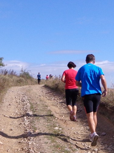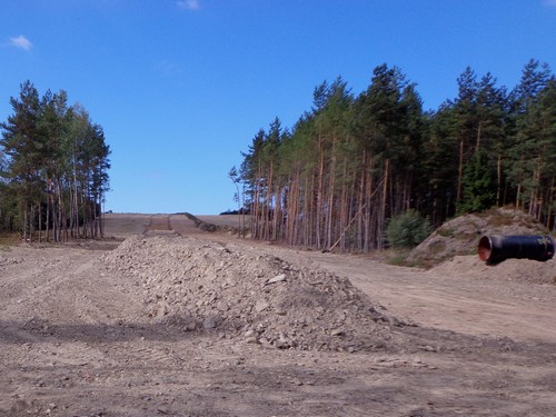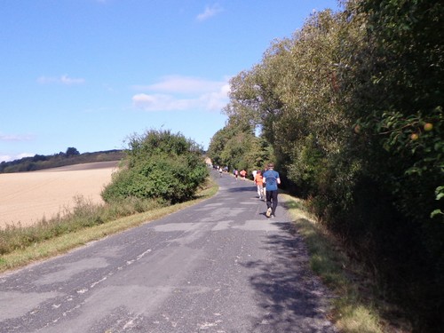 Kurz nachher verlassen uns die Halbmarathonis und es wird ruhig um mich. Monika ist hier abgebogen. Mike ist vorne auf und davon. Hier ist eine riesige Narbe in der Landschaft zu überqueren, eine Gas-Pipeline wurde hier vergraben.