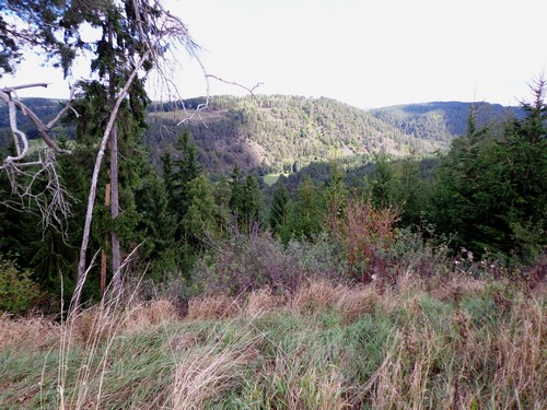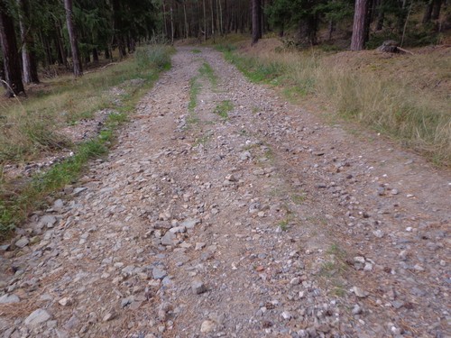 10.58 Uhr bei km8; Nun für ein paar hundert Meter wieder Asphaltstraße, scharf links abbiegen und steil einen Forstweg hinunter, über ein Bächlein, bevor es gleich wieder in einen Wald rauf geht.