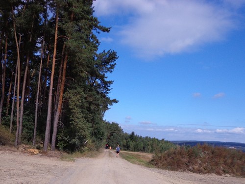 Nach 77min bin ich bei km11. Aus dem Wald dröhnt Motorengeräusch, jemand bewegt hier ganz ambitioniert ein Motocross-Motorrad. Ich kann es auch riechen.
