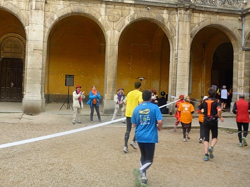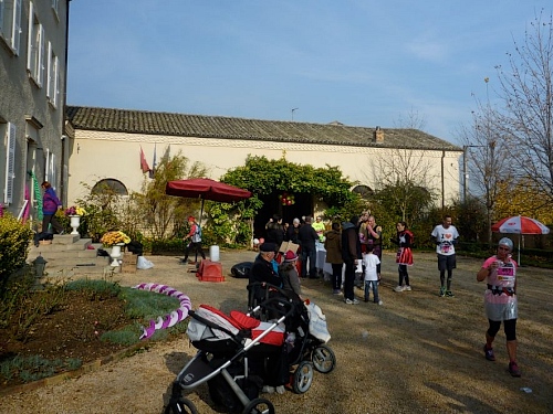 Durch die Weingüter dürfen nur die Marathonläufer. Eine größere Zahl an Läufern würden diese auch nicht verkraften. Um aber den Kurzstrecklern auch noch etwas besonderen Flair mitzugeben, leitet die Strecke rund einem Kilometer vor dem Ziel durch die Markthalle von Villefranche. Am Ausgang steht ein Ordner und bittet alle langsam zu tun, damit keiner die Treppe runter stürzt.