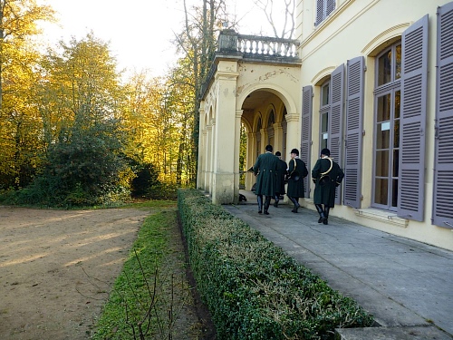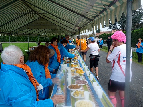 Die Sonne hebt definitiv die Stimmung. Das „Château de la Brasse“ kurz vor Km 20 bietet die nächste Möglichkeit zur Stärkung. Die Tische sind wieder reichlich gedeckt, ein Quartett sorgt für die musikalische Unterhaltung und das Läuferfeld ist nun so weit auseinander gezogen, dass wir mehr als genügend Platz haben. Es lohnt sich, etwas zu verweilen. Mit über 13 Minuten wird das der langsamste Kilometer des Tages.