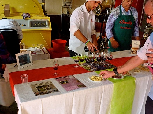 Sie ist ein bisschen größer und wahrscheinlich noch ausgelassener, als die Pastaparty. Die 1.600 Plätze waren schon einige Tage vor dem Event ausverkauft. Unsere Gruppe hat sich für ein kleines gemütliches Abendessen entschieden, daher kann ich zu dieser Party nichts berichten. Noch vor der Abschlussparty gibt es ein weiteres Spektakel, das man sich nicht entgehen lassen sollte.Nämlich die Ansprache des Bürgermeisters vor dem Rathaus. Nach einer kurzen Rede wird in zahlreichen Etappen die Geschichte der Weintraube vom Winter bis zur Ernte erzählt. Per Beamer gelangen überdimensionale Bilder auf das Rathaus. Atemberaubende Feuerwerke unterbrechen die Erzählung, untermalt von passender klassischer Musik. So mancher hatte beim Feuerwerk Angst, dass dabei der Rathausturm in Flammen aufgehen könnte.