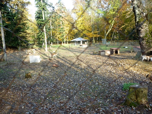Das letzte Weingut ist Château de Sermezy. Das Gut ist von einem ausladenden Park umgeben. Im Hauptgebäude wird eine Auswahl verschiedener Gummibärchen, Lakritz und ähnlichem Zuckermischungen geboten, und natürlich Wein, hier sogar stilecht in Weingläsern. Ich werde mit den Worten „das braucht man jetzt, es sind noch 20 Km“ genötigt, beim Süßzeug zuzugreifen. Der Weg hinaus aus dem Weingut zieht sich ebenfalls. Vorbei geht es an einem kleinen künstlich angelegten Tümpel, umringt von herbstlich gelben und roten Bäumen, sowie einem Gehege mit Ziegen und Rehen.