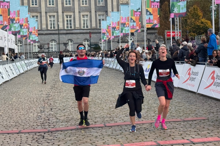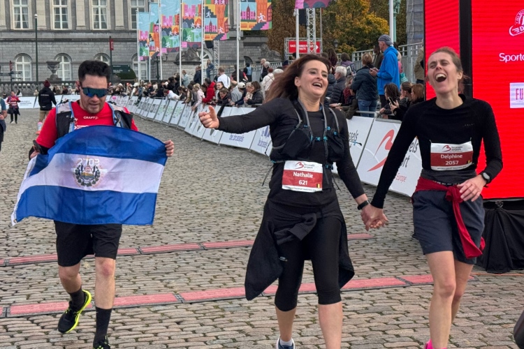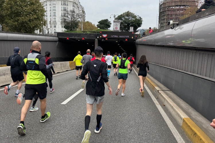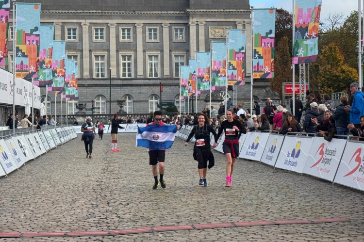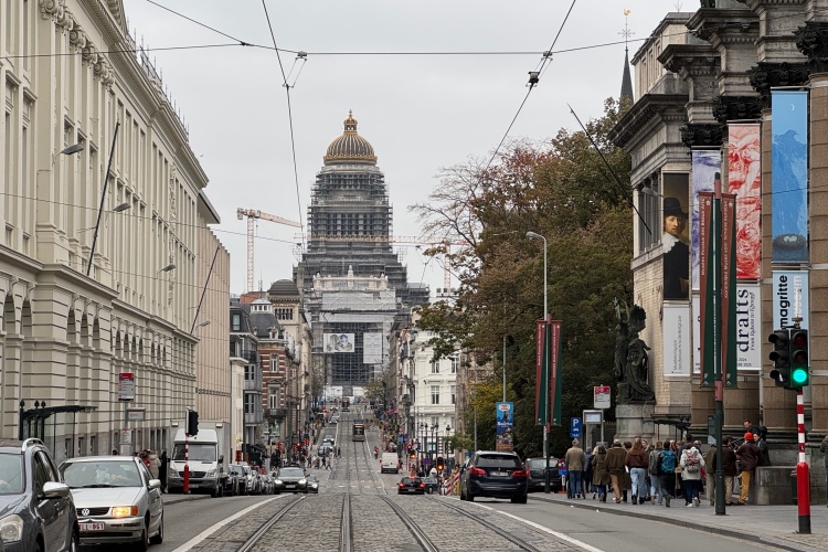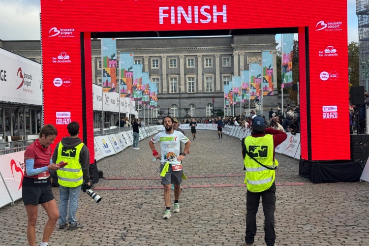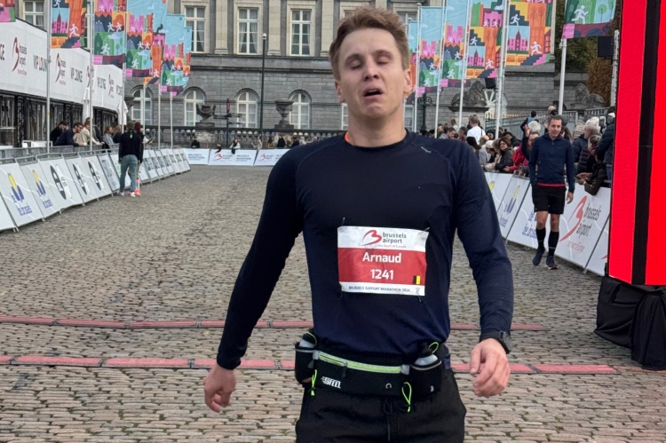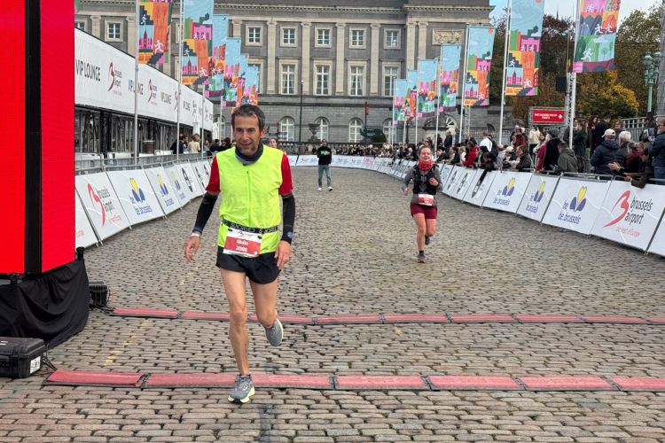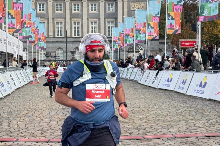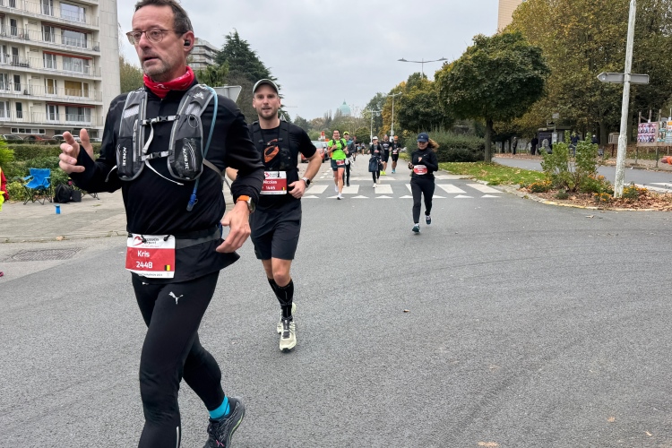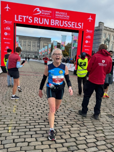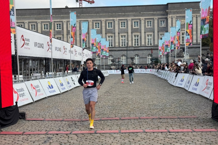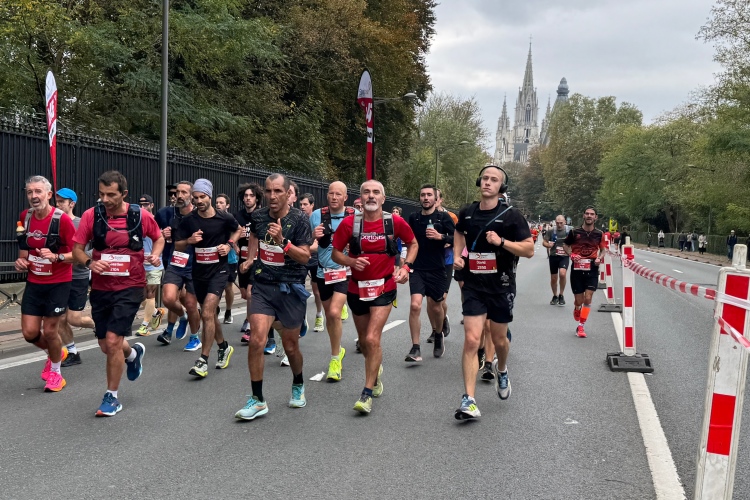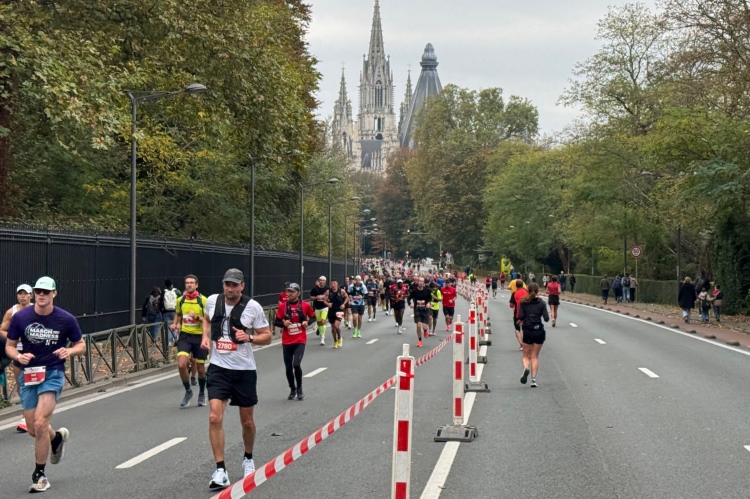 Die letzten neun Kilometer liegen vor uns: Den Park haben wir durchquert, und nun befinden wir uns auf einer Stadtschnellstraße. Rechts der alte Hafen, links noch genutzte Hafenbecken. Brüssel kann über den Meereskanal Brüssel-Schelde von Schiffen bis 4.500 Tonnen aus der Nordsee angesteuert werden. Über die Gleisanlagen von Schaarbeek. Mit der Hochhaussilhouette von Brüssel in weiter Ferne kommen wir wieder auf die bekannten schönen Alleestraßen, die gefühlt immer bergauf gehen. Einige Zuschauer feuern uns an, unzählige Streckenposten und PolizistInnen ebenfalls. Meine Beine tun mir weh. Drei Wochen Trainingspause kann ich jetzt gut spüren. Aber trotzdem laufe ich langsam an diversen gehenden Mitstreitern vorbei.