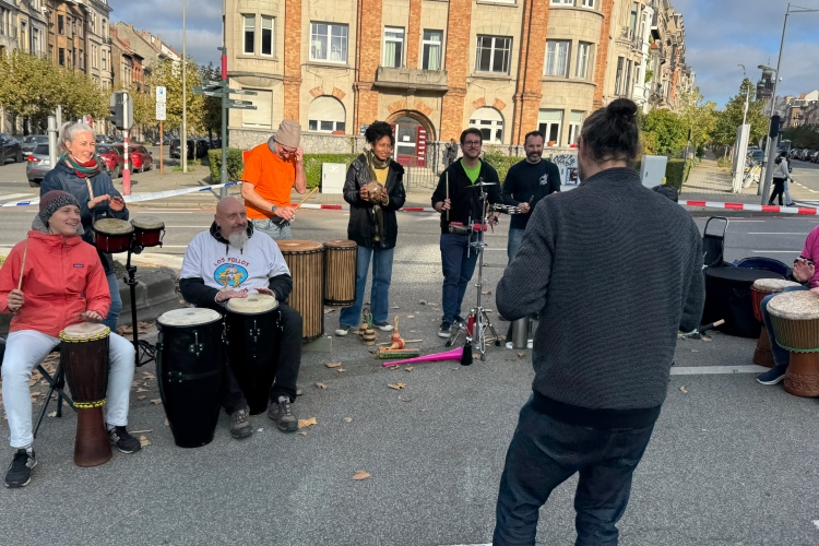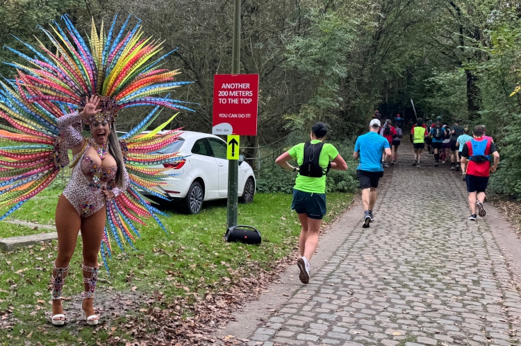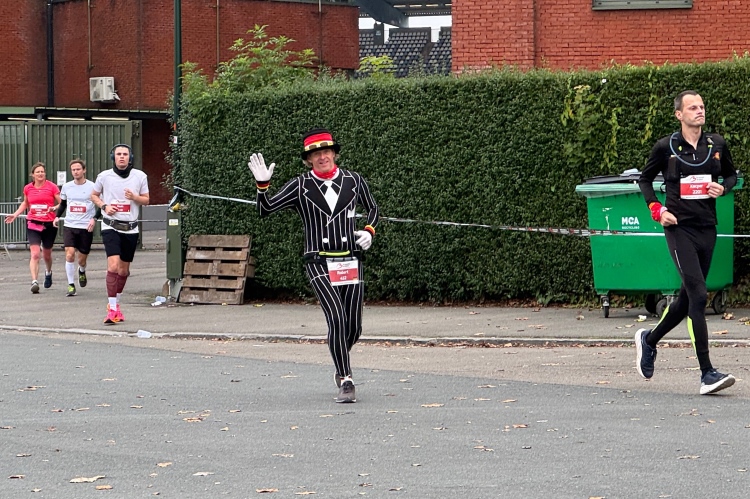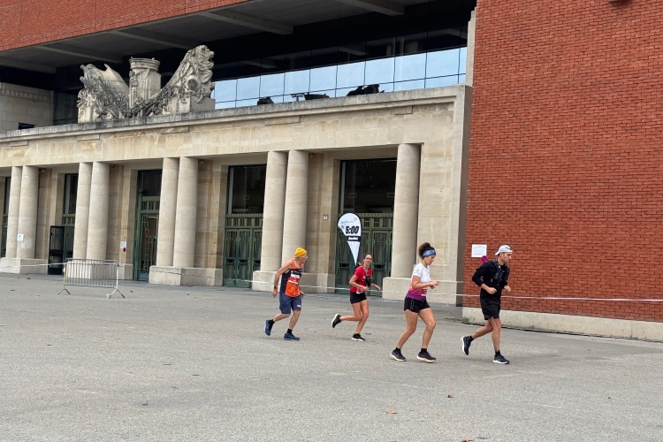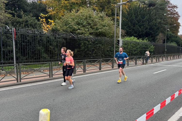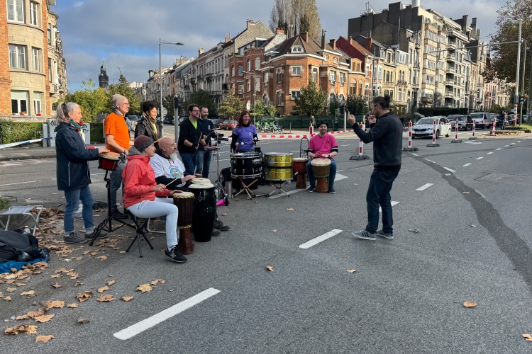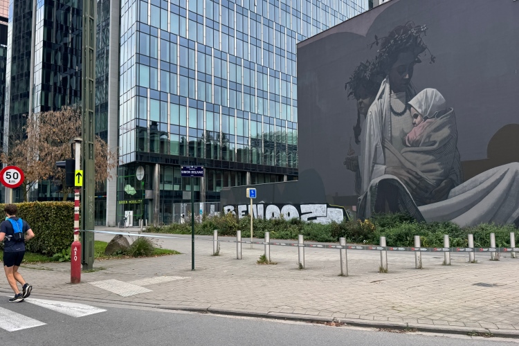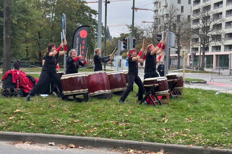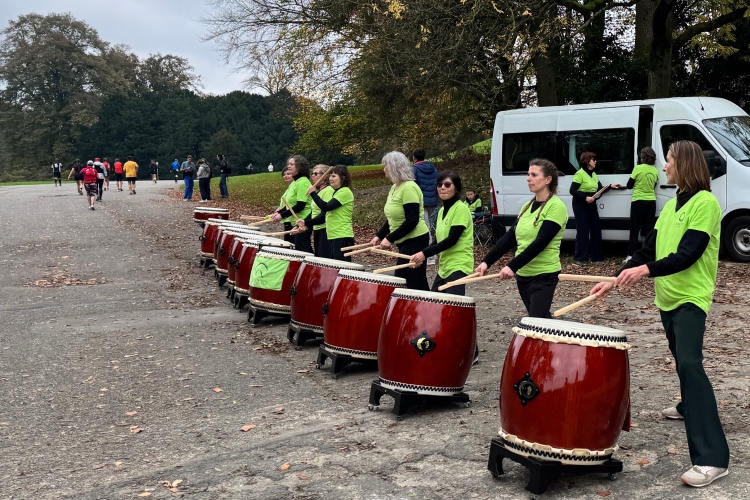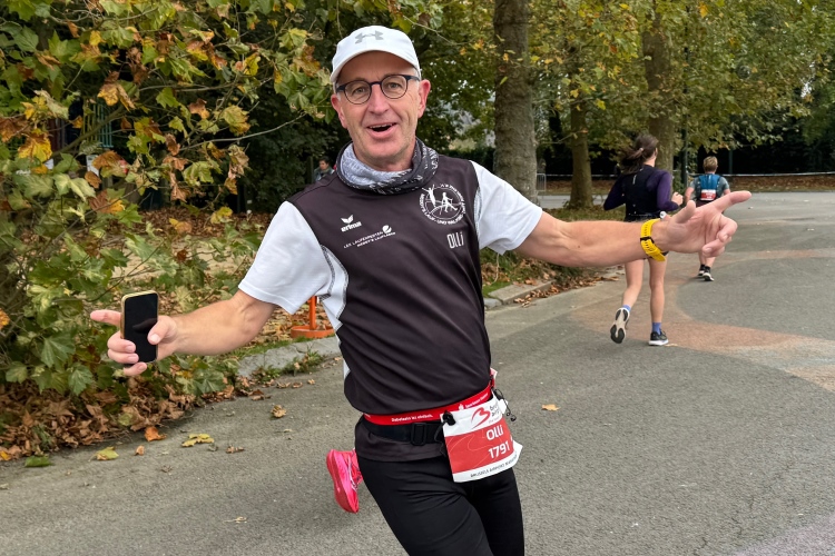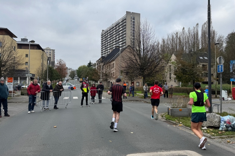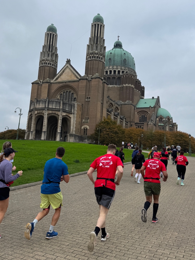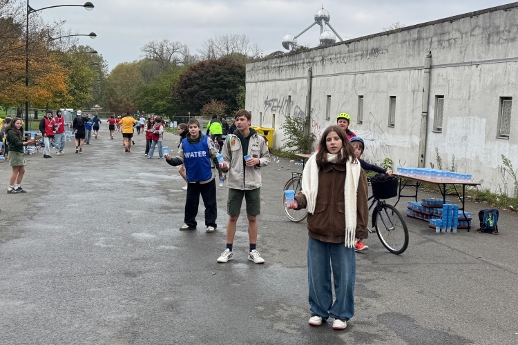 Die 1,2 Millionen Bewohnerinnen und Bewohner der Hauptstadtregion Brüssel verteilen sich auf 19 eigenständige Gemeinden. Wir kommen heute laut meiner Zählung durch sieben davon. Gestartet sind wir in Molenbeek-Saint-Jean. Nun sind wir in Ganshoren und auf der blockierten Gegenspur wird unentwegt gehupt. Ja, sind wir denn in Italien? Die Läuferin neben mir nimmt es gelassen und der Ordner blockiert die Autos, so gut es geht.