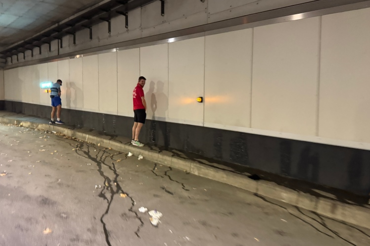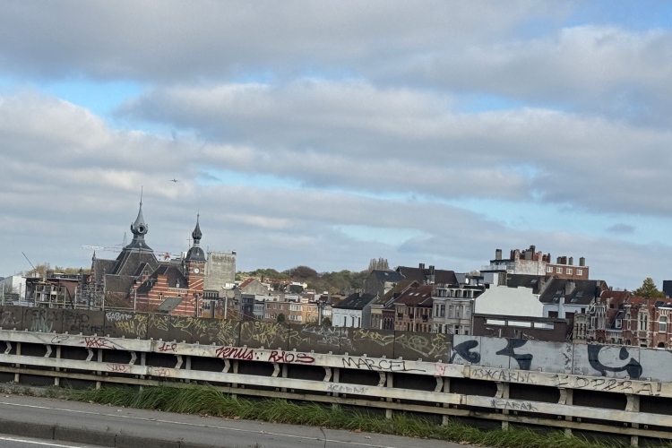 Danach sieht es erst einmal nicht aus. Auf dem breiten Boulevard d’Anvers laufen wir auf die Basilique Nationale du Sacré-Cœur in der Ferne zu. Dann bei Kilometer eins schon der erste Straßentunnel, 2 km lang und benannt nach Annie Cordy (1928-2020), einer überwiegend in Frankreich tätigen Sängerin und Schauspielerin, die aus dem Brüsseler Stadtteil Laken stammte. Im frisch renovierten Tunnel ist es etwas wärmer, sodass wir bald schön ins Schwitzen kommen. Und flach ist die Strecke auch nicht. Unbemerkt unterqueren wir auch den Schiffskanal nach Charleroi. Wellig geht es dahin. Die Herren mit schwacher Blase nutzen jede Nische im Tunnel, um sich zu erleichtern.