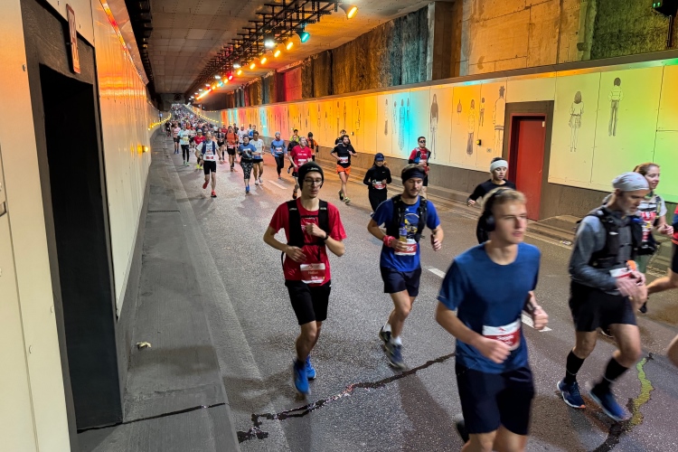 Dann endlich verlassen wir den Tunnel an einer Ausfahrt und kommen direkt vor der Basilika ans Tageslicht. Ein Alleinunterhalter singt Hits aus den 1970er Jahren. In der Grünanlage über dem Tunnel nun eine Schleife, also endlich Sightseeing. Ich sehe Judith schon ein gutes Stück vor mir. Aufgrund meiner überstandenen Corona-Infektion lasse ich es heute ruhiger angehen, mehr wäre auch gar nicht möglich. Ein ärztlicher Check am Donnerstag hatte ergeben, dass alle Blutwerte in Ordnung sind und einem Marathonstart nichts entgegensteht. Bis jetzt fühle ich mich auch ganz gut.