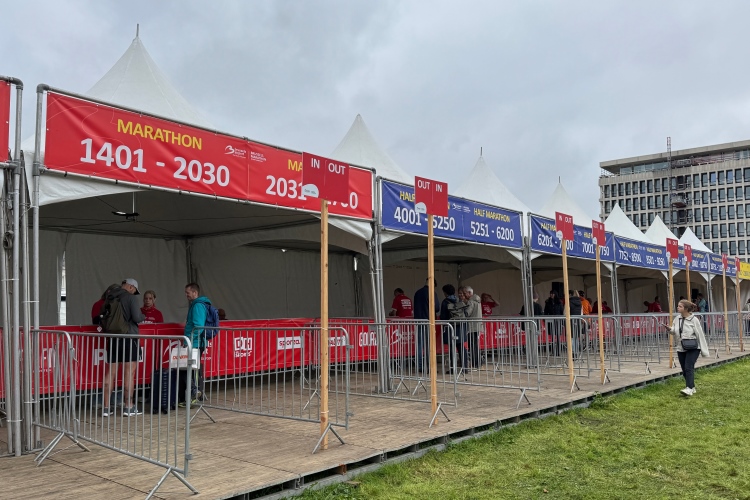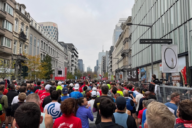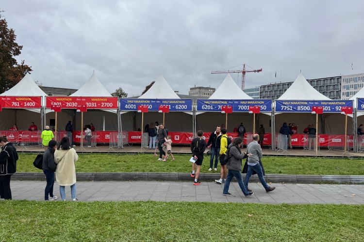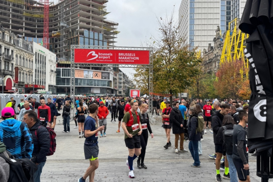 Der Start des Halbmarathons ist auf 9:00 Uhr festgelegt, der des Marathons auf 9:50 Uhr, vielleicht so spät, damit Teilnehmende auch am Veranstaltungstag noch anreisen können. Auch die Startnummern kann man am Sonntag noch kurzfristig abholen. Die Taschenabgabe befindet sich am Ziel im Warandepark vor dem Schloss. Der Weg zum Start ist gut ausgeschildert. So kommt man schon vorab zu etwas Sightseeing. Früher lag der Start-/Zielbereich des Marathons auch einmal auf dem Grand-Place, dem Hauptplatz von Brüssel, wegen des gotischen Rathauses und der geschlossenen barocken Fassadenfront seit 1998 Teil des UNESCO-Weltkulturerbes. Bei der Menge an Touristen und Einheimischen im Zentrum sind die vielen Läufer aber schwer unterzubringen. Außerdem gibt es dort viel Kopfsteinpflaster.