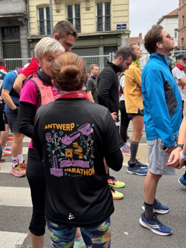 Wir reisen am Samstag mit dem Zug an und beziehen unser Hotel am Bahnhof Brüssel Nord. Dort in der Nähe wird auch der Start sein. Das Ziel befindet sich erstmals vor dem Königlichen Palast, 20 Gehminuten entfernt. Dort bekommen wir auch die Startnummern. Im Preis für die Anmeldung enthalten ist ein Finisher-Shirt, das uns schon vorab mit den Startunterlagen ausgehändigt wird, zusammen mit einem Schlauchtuch des Titelsponsors Brussels Airport „the heart of Europe“ im gleichen Rotton. In dem Umschlag befinden sich noch ein Aufkleber für die Taschenabgabe und Sicherheitsnadeln. Mit dem Verzicht auf Kleiderbeutel soll dem Umweltschutz Rechnung getragen werden.