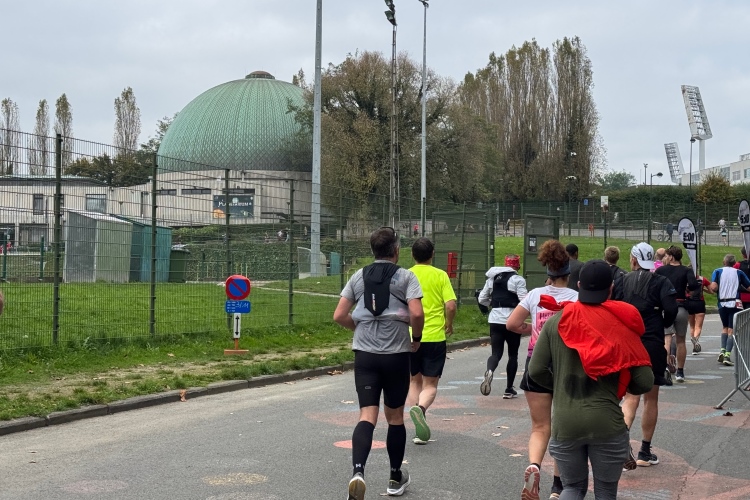 Weiter nun ins Grüne. Ein Palais liegt am Wegesrand. Dann halten wir auf ein Planetarium zu. Hier im Park gibt es oft Lauf-Gegenverkehr. Wir kommen zum König-Baudouin-Stadion, bis 1995 bekannt unter dem Namen Heysel-Stadion. Im Jahr 1972 gewann Deutschland hier gegen die Sowjetunion das Endspiel der Fußball-Europameisterschaft. 1985 war das Stadion, das später zu einer 50.000 Sitzplätze fassenden Multifunktionsarena umgebaut wurde, Schauplatz einer der schlimmsten Katastrophen in der Geschichte des Sports. Beim Europapokal-Endspiel zwischen dem FC Liverpool und Juventus Turin kamen in einer Massenpanik 39 Menschen ums Leben, 400 weitere wurden verletzt. Beim Durchlaufen des Anfield Stadions im Rahmen des Liverpool Marathons kamen wir an der Gedenkstelle für Heysel und Hillsborough - 1989 ebenfalls Schauplatz eines schweren Zuschauerunglücks - vorbei. Hier in Brüssel gibt es eine Sonnenuhr zum Gedenken.