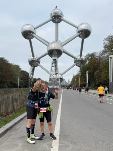 Uns beiden hat die Strecke gut gefallen. Es gibt viel von Brüssel zu sehen. Das Atomium an der Laufstrecke ist es allein schon wert mitzumachen. Die Strecke ist hügelig mit einige knackigen Anstiegen im Mittelteil. Insgesamt kommt meine Uhr auf über 400 Höhenmeter, Strava gibt 299 an.