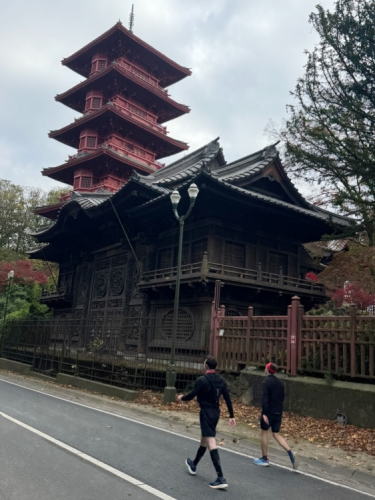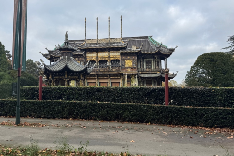 Der Blick auf die Liebfrauenkirche auf dem Weg zurück ist sehr schön. Blöd, dass es nun wieder recht zackig nach oben geht. Zwei Highlights warten noch auf uns: der Chinesische Pavillon und der Japanische Turm. Es handelt sich um Gebäude, die Anfang des 20. Jahrhunderts von König Leopold II in Auftrag gegeben wurden, um asiatische Kunstschätze aufzubewahren. Sie mussten immer wieder renoviert werden und sind aktuell geschlossen. Jetzt folgt mal ein längeres Stück leicht bergab.