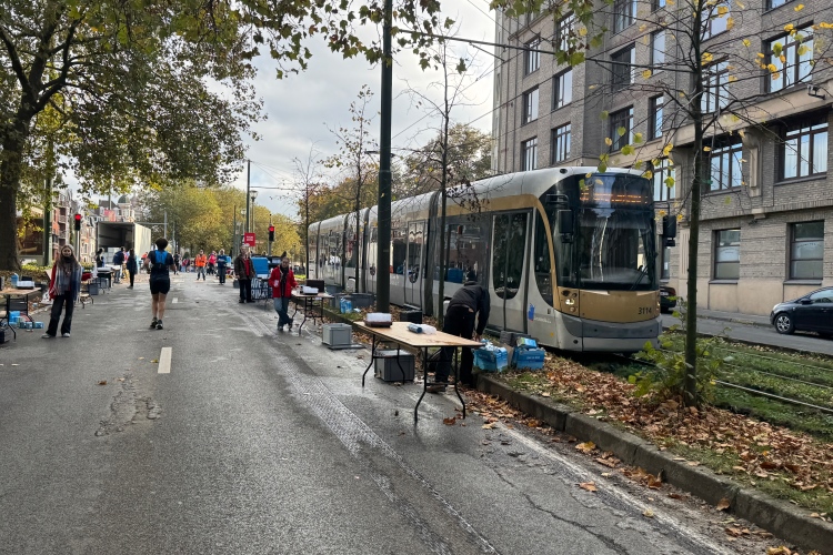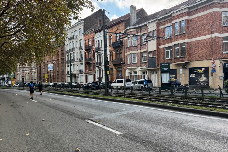 Zwei sehr schöne Kilometer durch eine Allee folgen. Zwischen den Bäumen fährt die Straßenbahn im Rasengleis und an den Seiten sehr nette Häuser in belgischem Stil, so es den denn gibt. Oft lohnt sich ein Blick in die großen Nebenstraßen. Manchmal sieht man da schöne Gotteshäuser.