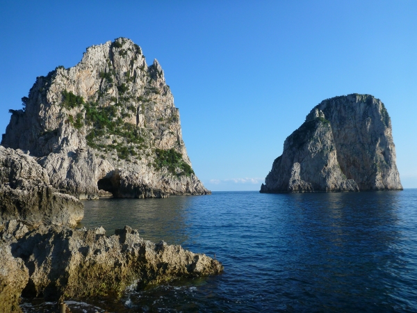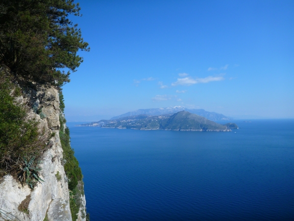 Capri im Golf von Neapel. 10 km2 große Insel mit mehr als 3 Mio Tagestouristen pro Jahr. Einfach ein Traum. An einem Tag gut zu besuchen: Villa Jovis mit tollem Blick vom Belvedere del Salto del Tiberio, 300m steil abfallende Felsenklippen; Arco Naturale, 60m aus dem Meer ragender Felsbogen. Via Krupp, steiler Weg hinunter zur Marina Piccola.