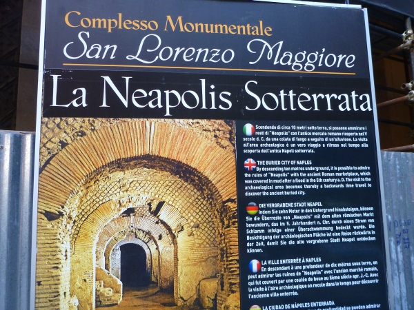 San Lorenzo Maggiore an der Piazza Gaetano/Via Tribunali 316. Unter der Kirche befinden sich Ausgrabungen aus den 50er Jahren einer römischen Ladenstraße mit Backstube und Weinkneipe.