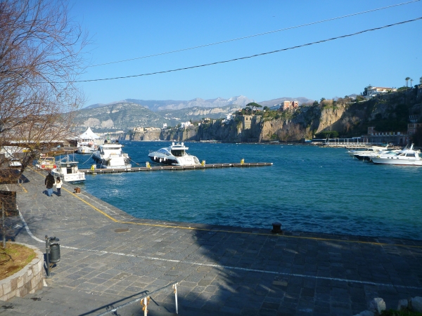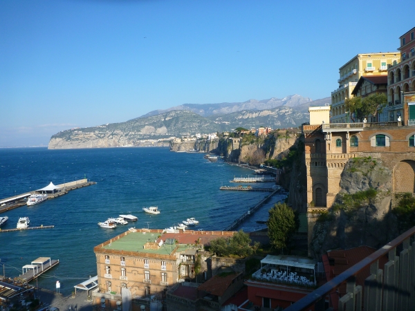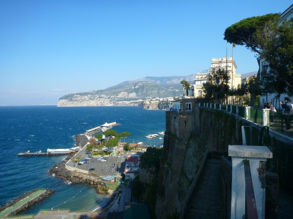 Sorrento auf der Halbinsel Amalfi. Sehenswerte Steilküste mit prachtvollen Hotels an der Klippe. Steiler Weg hinunter zum Meer. Kleine Altstadt mit typischen Touristenläden absolut sauber. Ein angenehmer Gegensatz zum Dreck in Neapel.